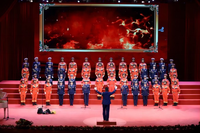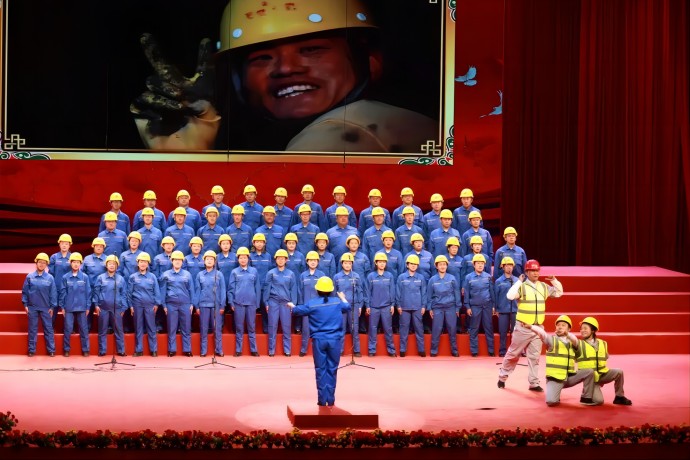 “朋友!你到過(guò)黃河嗎?你渡過(guò)黃河嗎?你還記得河上的船夫拼著性命和驚濤駭浪搏戰(zhàn)的情景嗎?如果你已經(jīng)忘掉的話,那么你聽(tīng)吧!”由58人組成的西藏開(kāi)投集團(tuán)參賽隊(duì)以一曲《保衛(wèi)黃河》,唱響了黨領(lǐng)導(dǎo)全國(guó)人民走過(guò)的風(fēng)雨歷程,唱出了戰(zhàn)勝敵人、奪取勝利的激情。