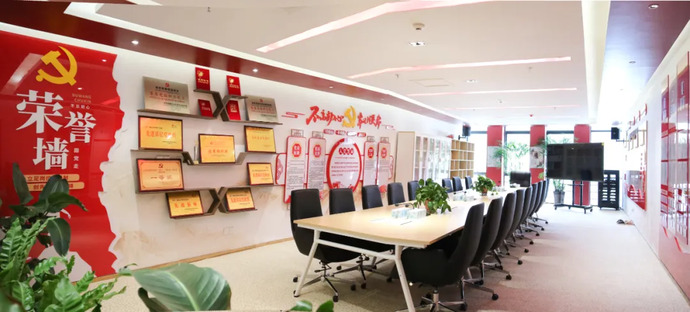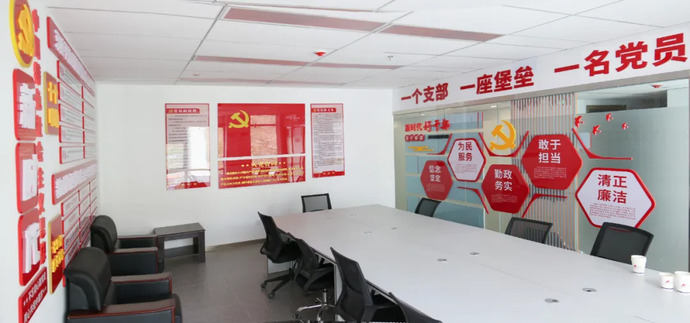集團(tuán)黨建活動陣地位于集團(tuán)辦公樓11樓,占地180㎡,分為黨建文化長廊、黨員活動室、支部會議室三個(gè)功能區(qū),集黨員學(xué)習(xí)教育、組織生活開展、黨建成果展示等功能于一體。其中,黨建文化長廊由黨建引領(lǐng)發(fā)展、傳承紅色精神、筑牢戰(zhàn)斗堡壘、挺膺擔(dān)當(dāng)奮進(jìn)、構(gòu)建精神文明、建設(shè)廉政文化六個(gè)部分組成,圖文并茂的形式讓每一位走過長廊的黨員都能深刻領(lǐng)悟黨建工作的深刻內(nèi)涵。黨員活動室包含了組織架構(gòu)展示、榮譽(yù)展示、黨建工作展示、學(xué)習(xí)區(qū)等內(nèi)容,配備桌椅茶幾等休閑設(shè)施,布置溫馨,氛圍濃厚。