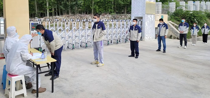 嘎堆水電廠現(xiàn)場,白班人員吃完早餐,戴好口罩,自覺接受體溫檢測,發(fā)現(xiàn)異常將第一時間予以隔離。這是電廠疫情期間的強制保障措施,既是對員工身體健康負責(zé),也是對安全生產(chǎn)負責(zé)。戰(zhàn)“疫”保電,從我做起,從每一個細節(jié)做起。