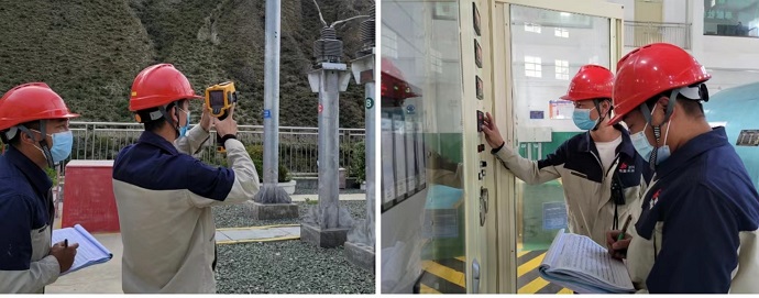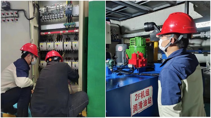 運維值班人員分別對廠內(nèi)水輪發(fā)電機組的勵磁系統(tǒng)、保護盤柜、調(diào)速器控制系統(tǒng)、潤滑油站、振擺監(jiān)測柜、出口開關(guān)柜等系統(tǒng)和廠外35千伏升壓站主變、互感器、斷路器、母線、避雷器等設(shè)備進行大約需要一個小時的巡檢和特巡,通過檢查設(shè)備的運行方式、隱患和缺陷等情況,全力保障機組安全穩(wěn)定運行。