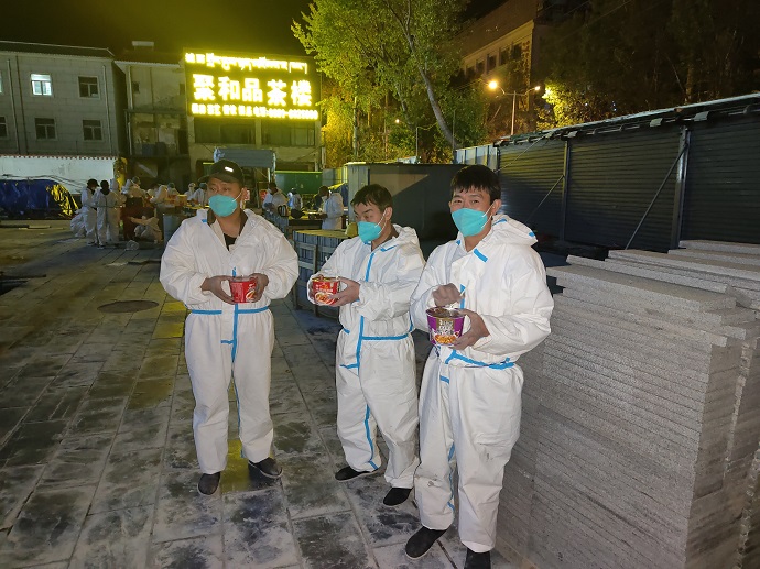 9月15日,接到自治區(qū)國(guó)資委及西藏開(kāi)投集團(tuán)公司通知,拉薩新建方艙醫(yī)院需工程類(lèi)人員支援,酒店緊急抽調(diào)工程類(lèi)專(zhuān)業(yè)人員4人前往支援,從15日21時(shí)到次日上午9時(shí)完成了支援任務(wù)。12個(gè)小時(shí)的忙碌下來(lái),每個(gè)人都是汗流浹背,可沒(méi)有人抱怨,沒(méi)有人喊苦喊累。