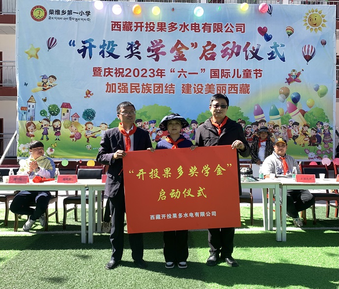 活動(dòng)現(xiàn)場(chǎng)舉行了“開投果多獎(jiǎng)學(xué)金”啟動(dòng)儀式及凈水設(shè)備捐贈(zèng)儀式。果多水電公司董事長(zhǎng)、總經(jīng)理宋亞東表示,“開投果多獎(jiǎng)學(xué)金”的設(shè)立,旨在獎(jiǎng)勵(lì)品學(xué)兼優(yōu)的學(xué)生,鼓勵(lì)大家努力學(xué)習(xí),奮發(fā)向上,努力成長(zhǎng)為國(guó)家的棟梁之材。柴維鄉(xiāng)小學(xué)校長(zhǎng)代表全校師生對(duì)果多水電公司融入地方經(jīng)濟(jì)社會(huì)發(fā)展、支持教育事業(yè)、積極承擔(dān)社會(huì)責(zé)任的善舉表示衷心的感謝,并希望同學(xué)們將善舉轉(zhuǎn)化為學(xué)習(xí)、前進(jìn)的強(qiáng)大動(dòng)力,努力學(xué)習(xí),勵(lì)志成才,以優(yōu)異的成績(jī)回報(bào)社會(huì),努力成為對(duì)社會(huì)有用的人才。