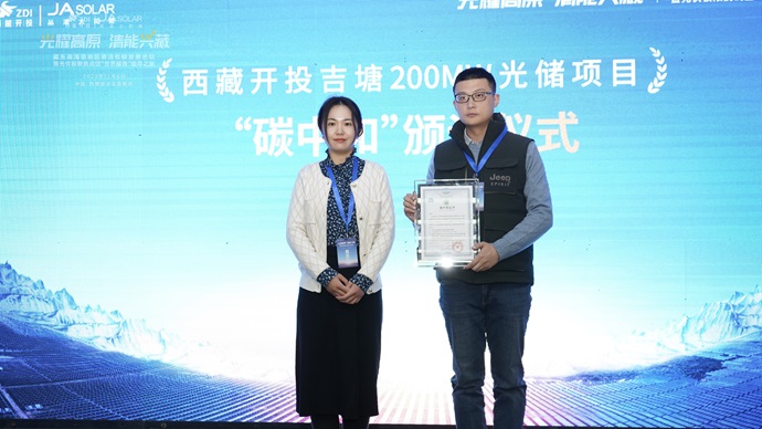 CTC國檢為吉塘200MW項目頒發(fā) “碳中和”證書