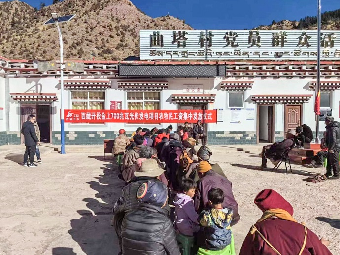 12月21日,西藏開(kāi)投金上光伏能源有限公司舉行農(nóng)牧民工資發(fā)放儀式,為昂多鄉(xiāng)曲塔村農(nóng)牧民185人發(fā)放工資報(bào)酬近243萬(wàn)元。