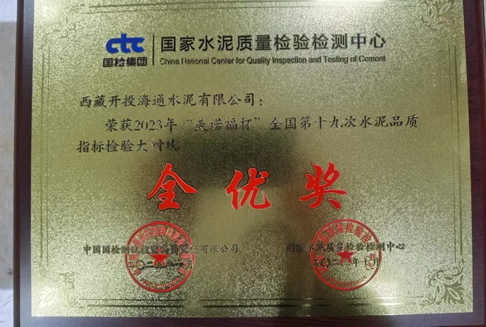近期,西藏開投海通水泥有限公司獲得“美諾福杯”全國第十九次水泥品質(zhì)指標檢驗大對“全優(yōu)獎”。