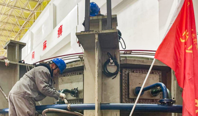 在檢修工作中黨員先鋒隊充分發(fā)揮專業(yè)優(yōu)勢,在精細檢修、精益求精中沖鋒在前,黨員技術(shù)骨干帶頭對重要部位、重要設(shè)備進行逐一檢查,測量相關(guān)數(shù)據(jù),對磨損部件提出修復(fù)意見和改造方案,切實提升設(shè)備性能;在電氣設(shè)備檢修過程中,黨員主動承擔勵磁系統(tǒng)、繼電保護裝置等檢測任務(wù),運用精密儀器進行全面絕緣檢測與參數(shù)調(diào)試,憑借豐富經(jīng)驗和精湛技術(shù),及時發(fā)現(xiàn)并處理多處潛在隱患點;在水工建筑物檢查方面,黨員積極協(xié)助開展蝶閥、盤型閥及尾水閘門等過水部件密封檢查,并對發(fā)電廠房尾水設(shè)施進行細致排查,經(jīng)檢查目前水工設(shè)施基本完好。