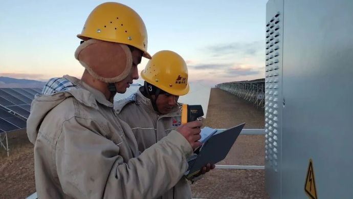 為了電站的安全穩(wěn)定運(yùn)行,改則光儲(chǔ)電站運(yùn)維人員每天必須要做的就是開展設(shè)備巡檢,從中控室出發(fā)前往高壓開關(guān)室、升壓站、光伏區(qū)、生活區(qū)等關(guān)鍵位置,對(duì)變壓器、SVG、逆變器、儲(chǔ)能箱變、光伏板等設(shè)備依次進(jìn)行全方位排查。“冬季電站運(yùn)維面臨的最大挑戰(zhàn)就是大風(fēng),改則光儲(chǔ)電站地勢較高,冬天幾乎每天都是大風(fēng)天氣,有時(shí)候風(fēng)吹得人都站不穩(wěn),刮得人臉上生疼。越是這種天氣越要認(rèn)真排查有沒有光伏板被風(fēng)吹掉了、設(shè)備運(yùn)行是否正常、組件螺栓有沒有松動(dòng)……生活上的一些用電等隱患也要仔細(xì)排查。如果發(fā)現(xiàn)問題,我們第一時(shí)間記錄并處理。”西藏開投電力工程公司副總經(jīng)理孫繼東說。