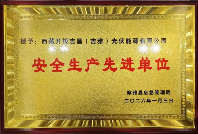近日,西藏開投吉昌(吉雅)光伏能源公司被察雅縣應(yīng)急管理局授予“安全生產(chǎn)先進(jìn)單位”榮譽(yù)稱號(hào)。