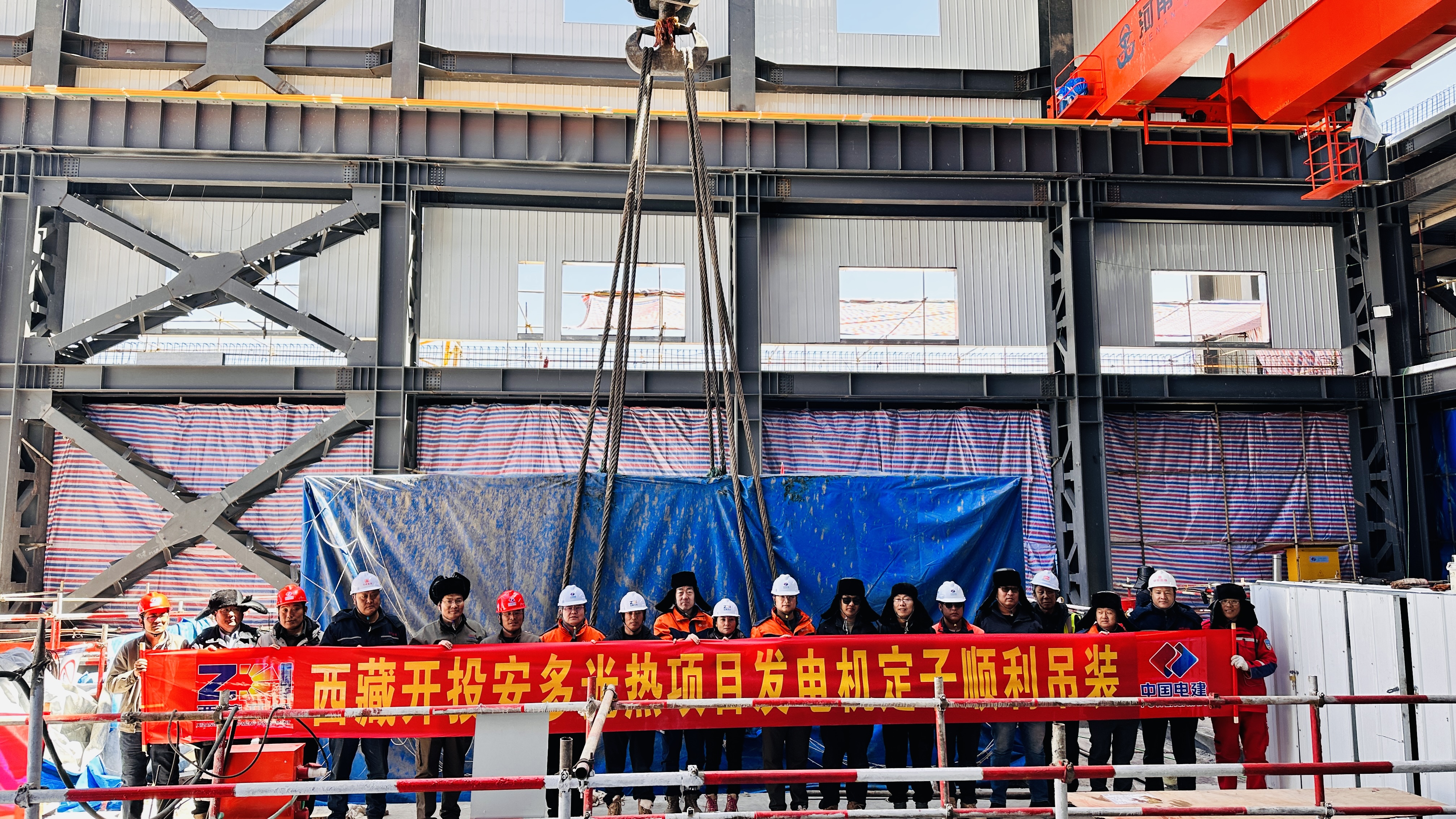 一線傳真丨土碩光熱項(xiàng)目發(fā)電機(jī)定子吊裝順利完成