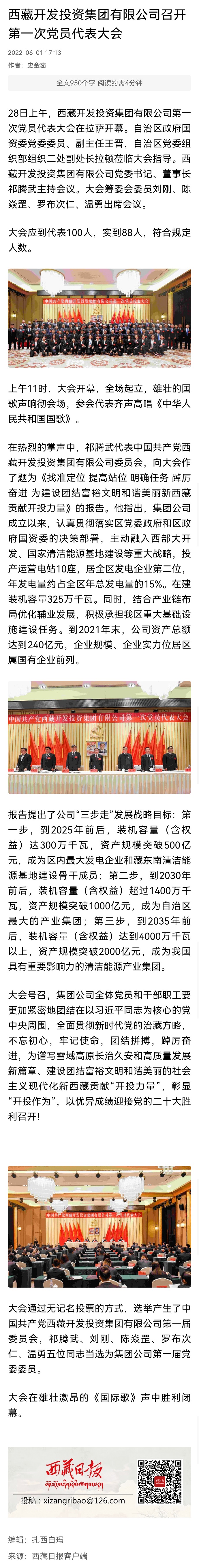 中國(guó)共產(chǎn)黨西藏開(kāi)發(fā)投資集團(tuán)有限公司 第一次黨員代表大會(huì)