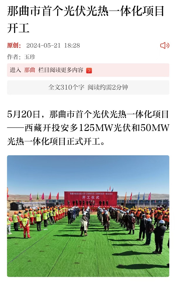 媒體報(bào)道丨那曲市首個(gè)光伏光熱一體化項(xiàng)目開(kāi)工
