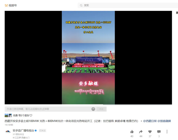 6月10日,全球海拔最高、西藏首個塔式光熱項目——西藏開投安多土碩100MW光熱電站正式開工建設(shè)的消息,被人民網(wǎng)、新華網(wǎng)、央視、光明日報、經(jīng)濟(jì)日報、科技日報、中國新聞網(wǎng)、中國西藏網(wǎng)、中國發(fā)展網(wǎng)、西藏發(fā)布、西藏日報、西藏廣播電視臺、西藏商報、安多縣廣播電視臺等各級媒體平臺宣傳報道,有力提升了集團(tuán)品牌影響力和產(chǎn)業(yè)發(fā)展的傳播力。