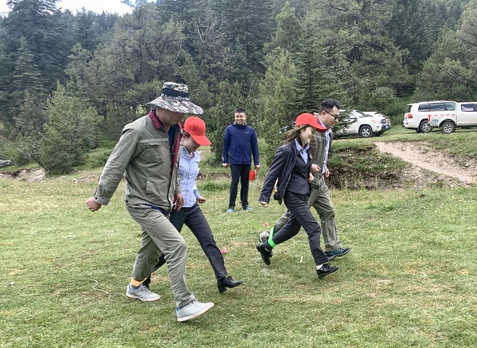 座談結(jié)束后,全體黨員面向黨旗莊嚴(yán)宣誓,重溫入黨誓詞,激勵(lì)永葆入黨初心。最后,兩支部開(kāi)展了以“重溫紅色”為主題的戶外團(tuán)建活動(dòng),通過(guò)重走長(zhǎng)征路、黨建知識(shí)問(wèn)答、紅色詞匯你比我猜、兩人三足等活動(dòng)進(jìn)一步增進(jìn)支部交流互動(dòng)。活動(dòng)現(xiàn)場(chǎng),參賽隊(duì)員充分發(fā)揚(yáng)團(tuán)隊(duì)精神,積極參與,精誠(chéng)合作,加油聲、吶喊聲、歡呼聲此起彼伏。