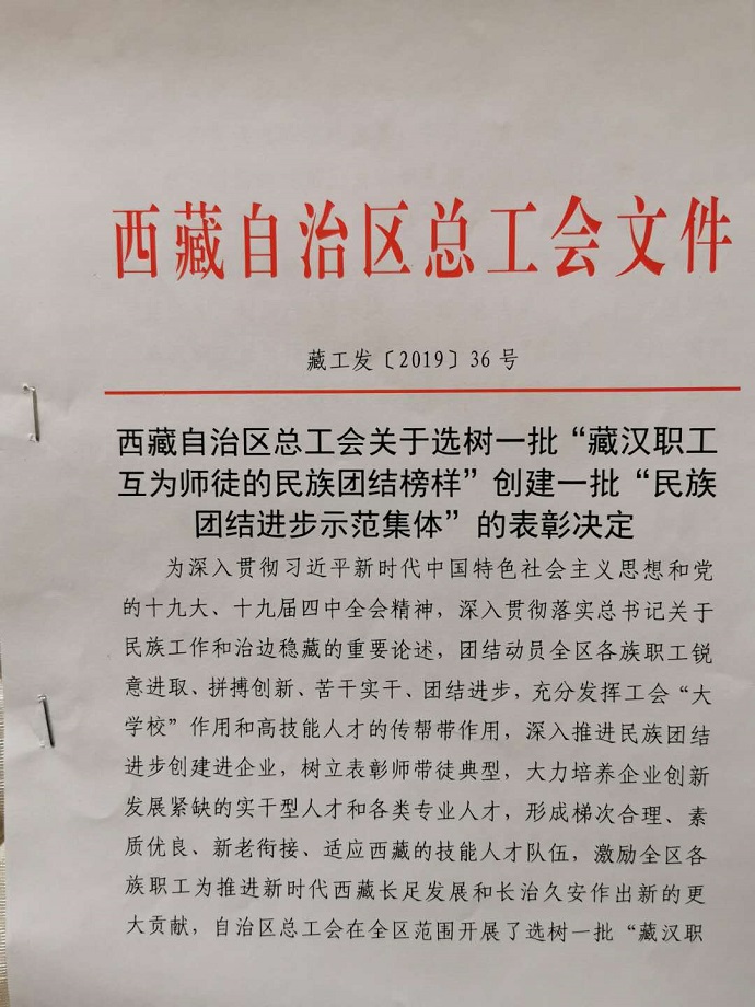 西藏自治區(qū)總工會關于選樹一批"藏漢職工互為師徒的民族團結榜樣"創(chuàng)建一批"民族團結進步示范集體"的表彰決定