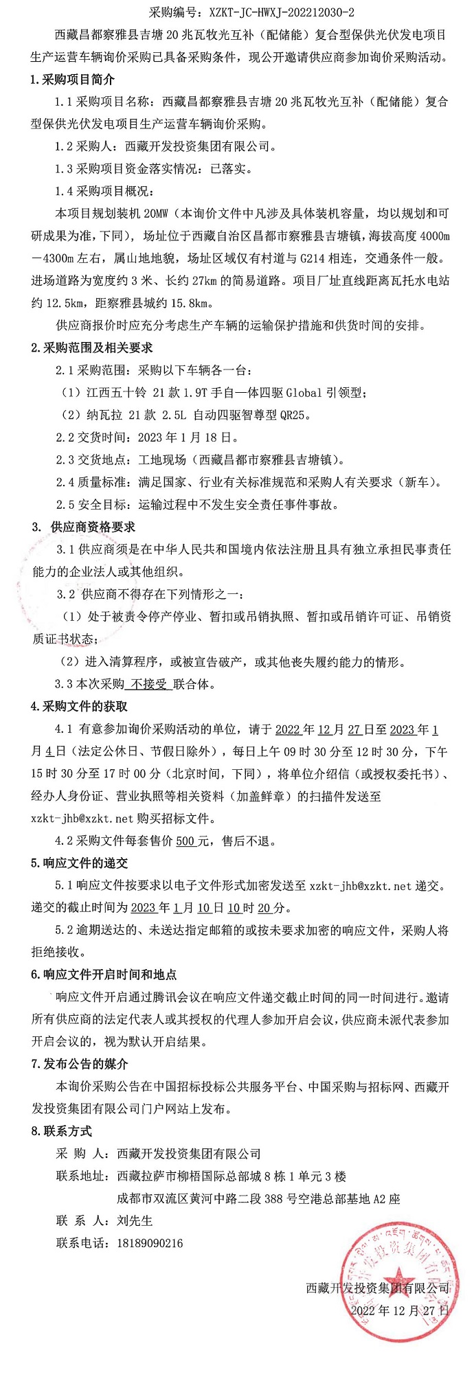 西藏昌都察雅縣吉塘20兆瓦牧光互補(配儲能)復合型保供光伏發(fā)電項目生產(chǎn)運營車輛詢價采購二次公告