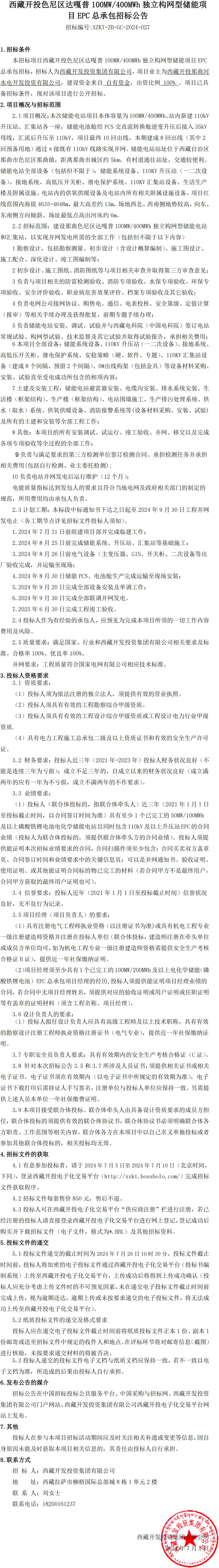 西藏開投色尼區(qū)達嘎普100MW400MWh獨立構網(wǎng)型儲能項目EPC總承包公告