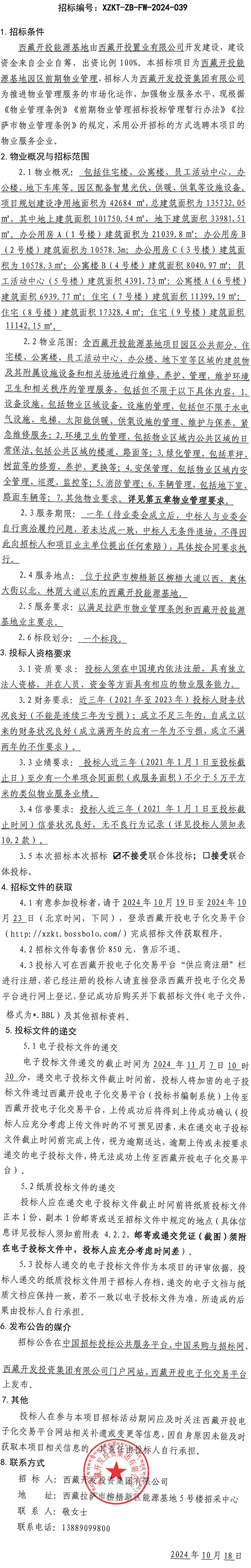 西藏開投能源基地園區(qū)前期物業(yè)管理招標(biāo)公告